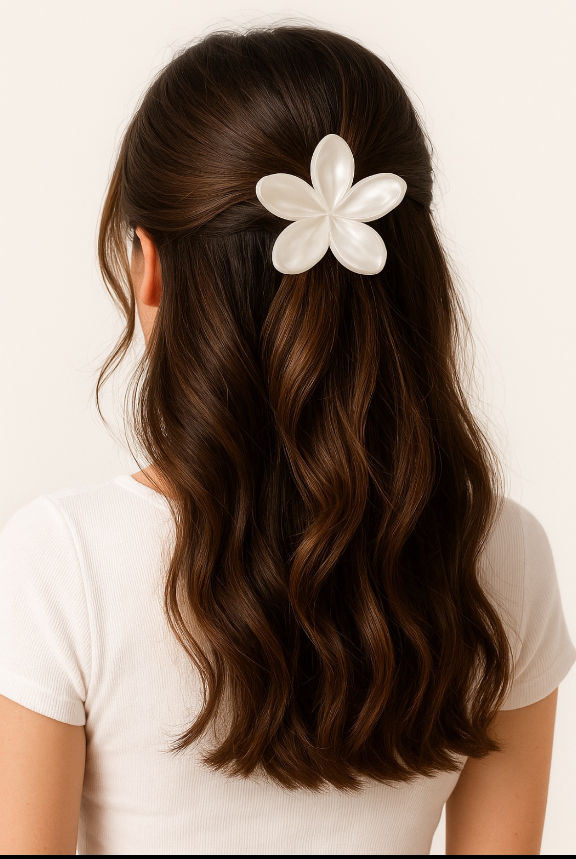 Geef je kapsel een upgrade met de Pearly haarclip – dé must-have accessoire voor een stijlvolle en verzorgde look. Deze stevige bloemvormige haarclip combineert een elegant design met een luxe parelmoer afwerking, perfect voor dagelijks gebruik of een speciale gelegenheid.